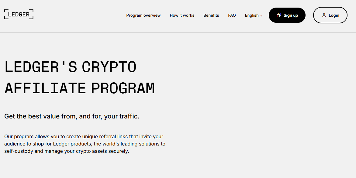 Ledger sells physical hardware wallets, making this a true product based affiliate offer. Security focused users convert well because protecting crypto is a real concern. Affiliates earn around 10 percent per sale, and product prices are relatively high. Reviews, comparisons, and security content perform best. Ledger has strong brand recognition.